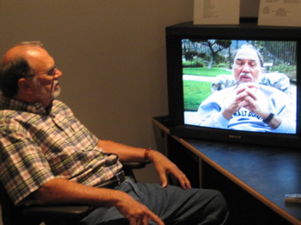 Seeing double. Dorse analyzes himself on screen.
